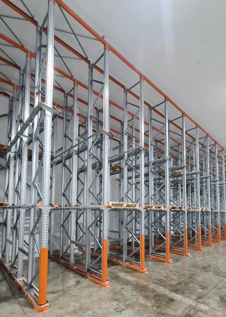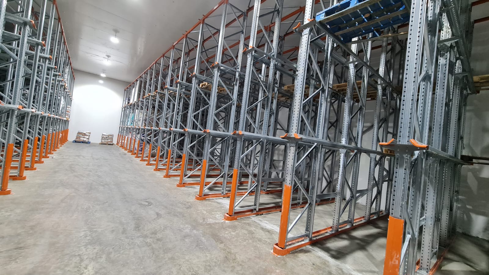 Los Rack Drive In seleccionados, han sido instalados en una cámara frigorífica. Son perfectos para almacenar un gran número de palets con la misma referencia. Este tipo de sistema de paletización permite una gran compactación de las mercancías, se puede aplicar a cualquier industria y permite el funcionamiento e instauración del método LIFO y FIFO.